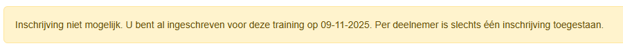 Ja, alleen toekomstige data ➤ De deelnemer mag zich slechts één keer inschrijven voor een toekomstige training. ➤ Eerdere (verlopen) inschrijvingen worden niet meegeteld.